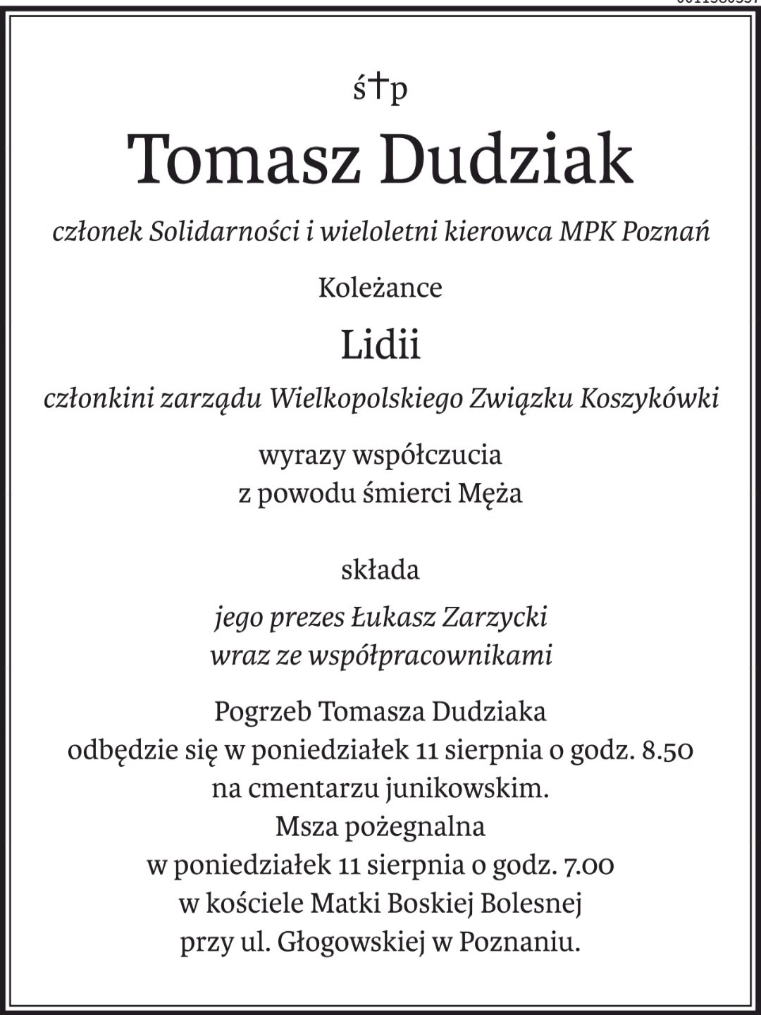 Koleżance Lidii Dudziak członkini zarządu Wielkopolskiego Związku Koszykówki składamy wyrazy współczucia z powodu śmierci Męża.